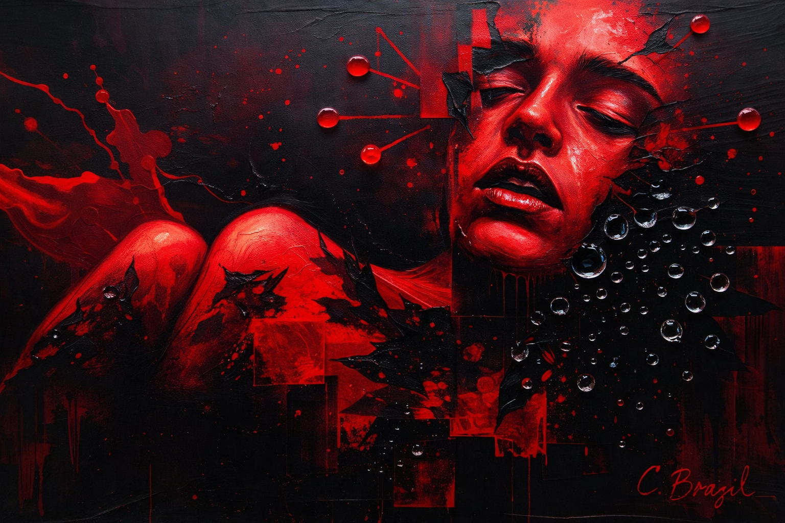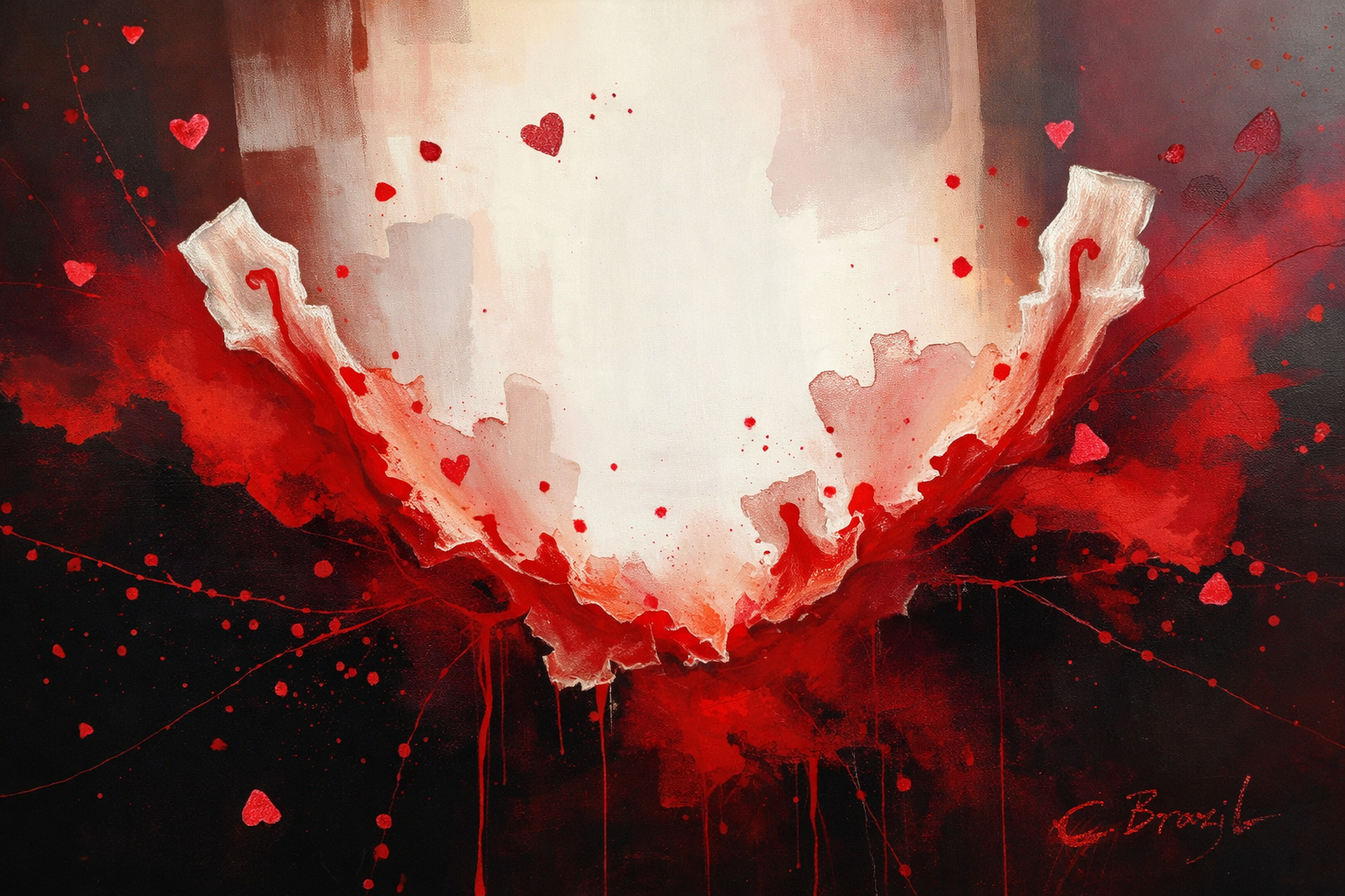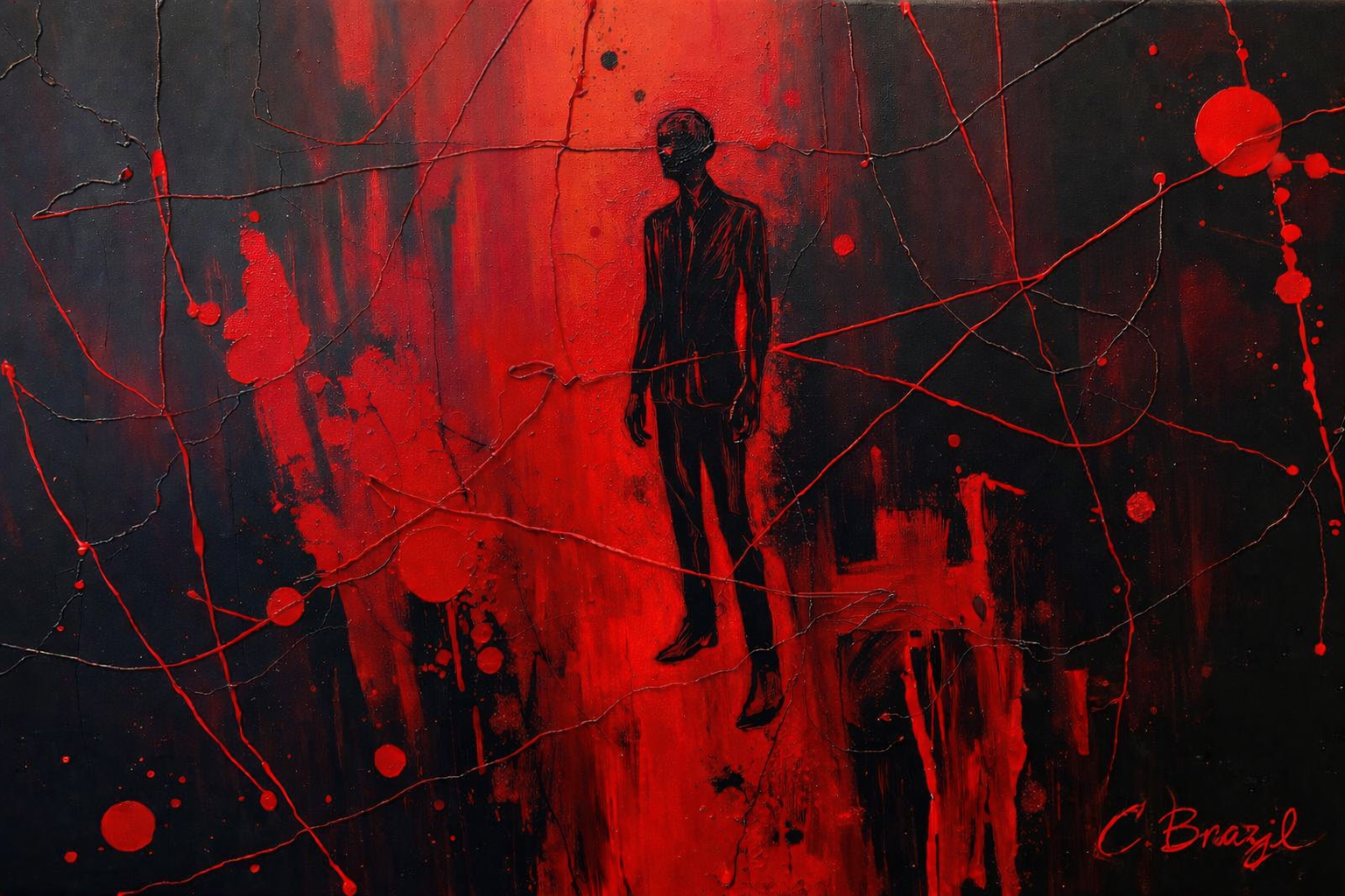 I use layered textures, fractured forms, restrained palettes, and symbolic tension to reflect how trauma reorganizes perception. Nothing here is accidental. Every rupture, every soft edge, every whether saturated or muted, carries meaning.