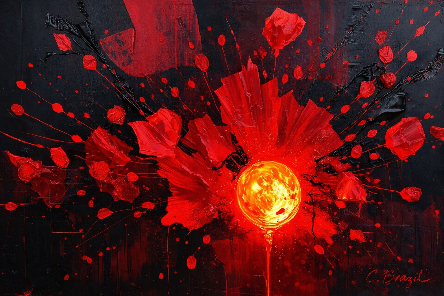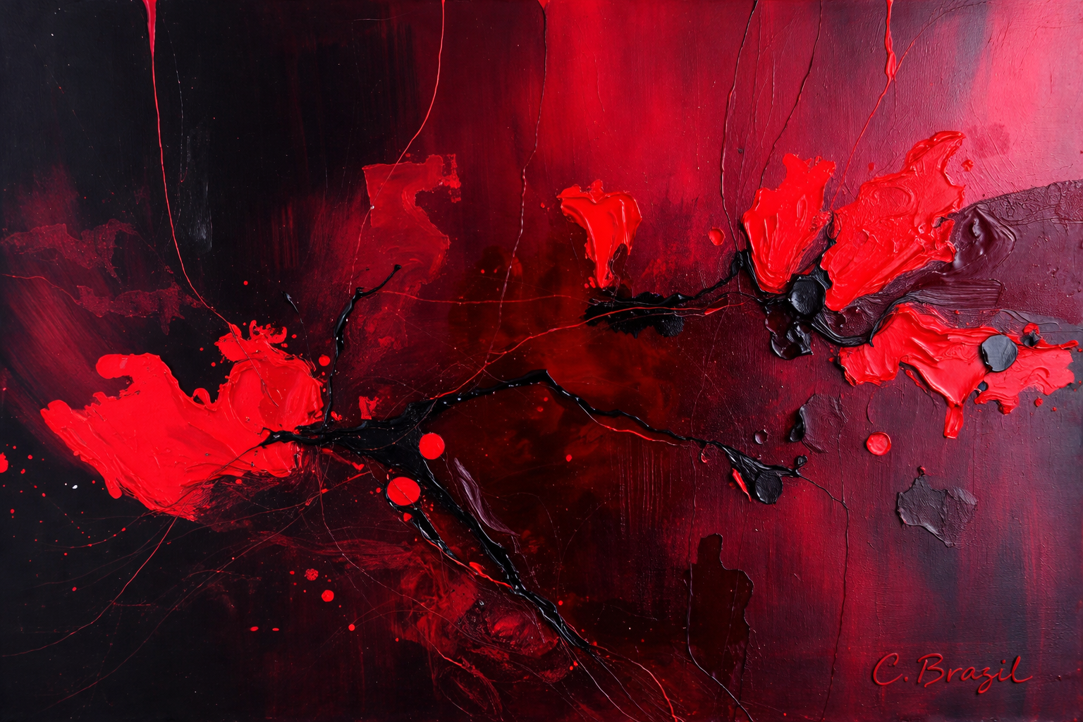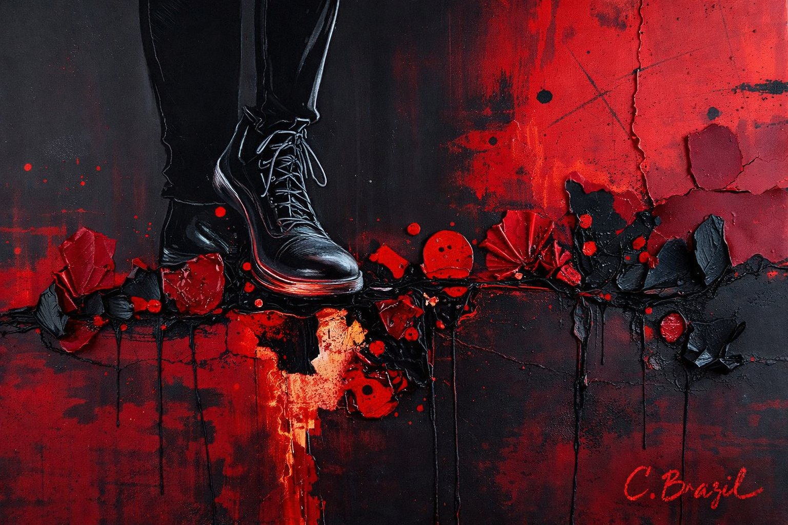 I use layered textures, fractured forms, restrained palettes, and symbolic tension to reflect how trauma reorganizes perception. Nothing here is accidental. Every rupture, every soft edge, every whether saturated or muted, carries meaning.